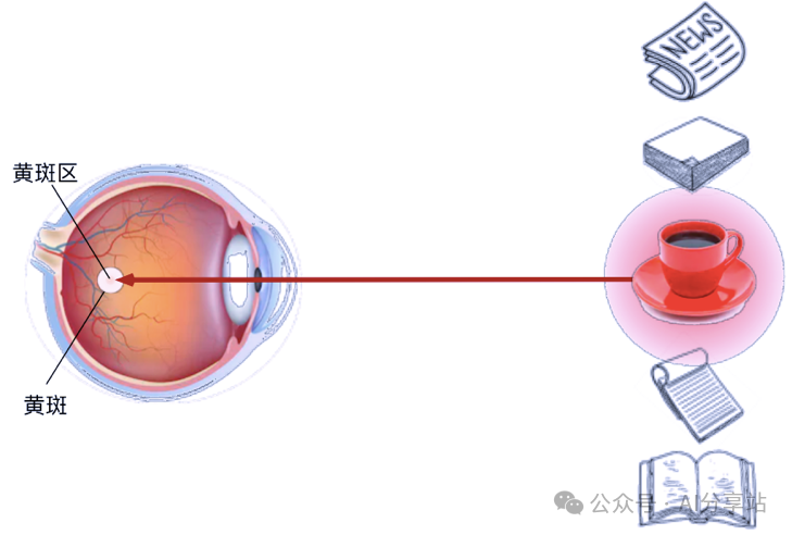 我们在所处环境中,时刻都能不由自主地目及一些事物,还有另外一些事物,这时进入视觉系统的物体如果有特别突出的特征,我们就会将注意力的焦点放在其上面,如下图所示: