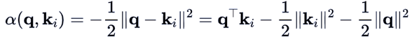 前面我们使用 Nadaraya–Watson 核回归模型,使用了一个高斯核 α(q, k) 基于相似度来评估注意力权重,注意力评分函数(Attention Scoring Function)如下所示: