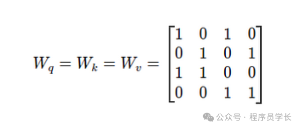 - ,, 是可训练的权重矩阵,将输入向量映射为不同的查询、键和值向量。