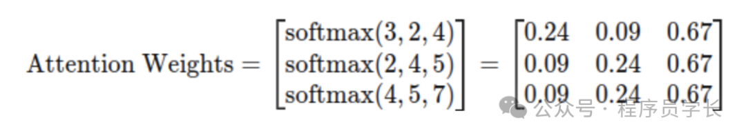 这一步确保权重和为1,使得输出能够更具稳定性,并可以看作是序列中每个位置对其他位置的依赖程度。