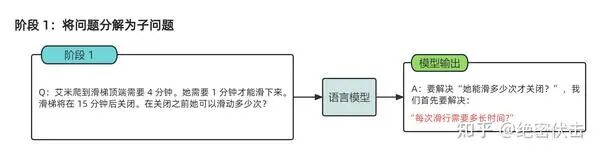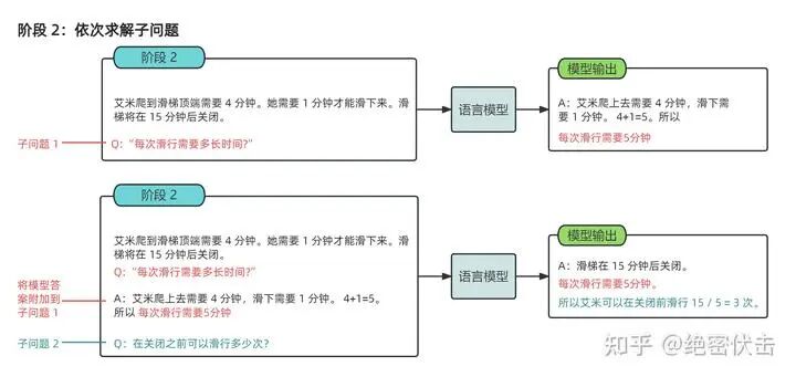 而 Stage 2 做的事情则是利用 Stage 1 得到的子问题和其解题结果拼进 Stage 2 的输入当中,让模型来生成最终答案,如下图所示: