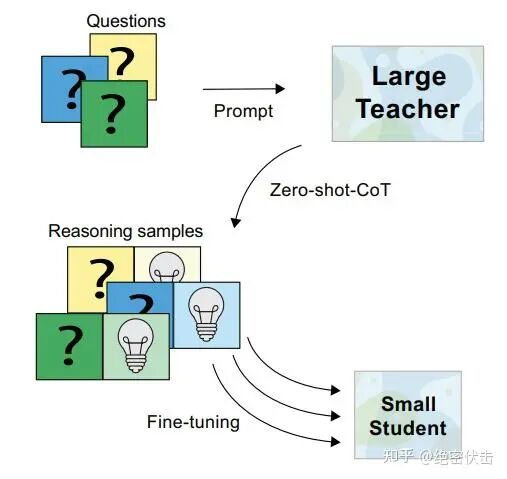 为了详细说明,下面应用前面的 Zero-shot-Cot从非常大的教师模型中生成推理,并使用它们来微调较小的学生模型。