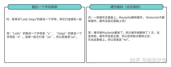 论文里面作者提到了很多 CoT 的优势,其中包括它把一个多步推理问题分解出多个中间步骤,并且让 LLM 更加可解释。它能解决的问题很多,除了上述的数学应用题,还有常识推理、以及 symbolic manipulation (符号操作)这类任务(就是一些手造的考验大模型的问题,比如最典型的 Last Letter Concatenation(最后一个字母串联) 和 coin flip(抛硬币)),下面补充几个例子方便理解: