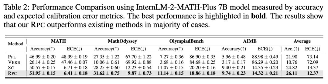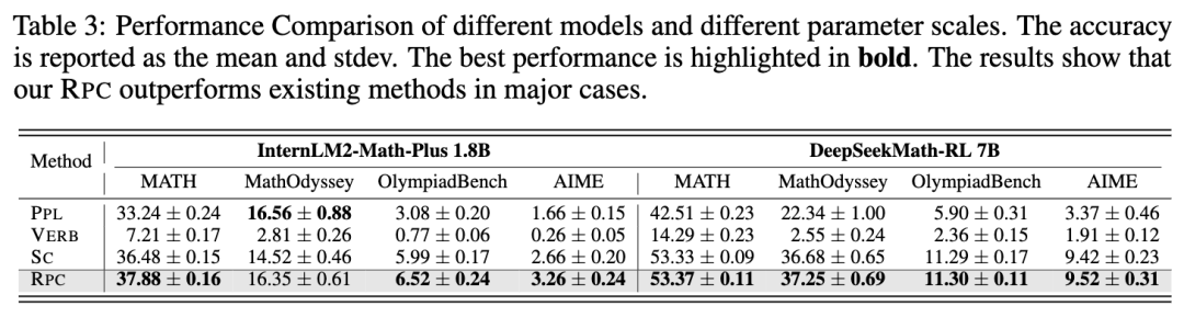 - 跨模型泛化:在不同规模(1.8B vs 7B)和不同架构(InternLM vs DeepSeek)的模型上,RPC 的优势保持一致(见表 3)。