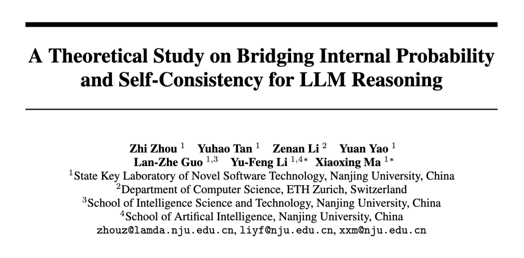 - 论文标题:A Theoretical Study on Bridging Internal Probability and Self-Consistency for LLM Reasoning