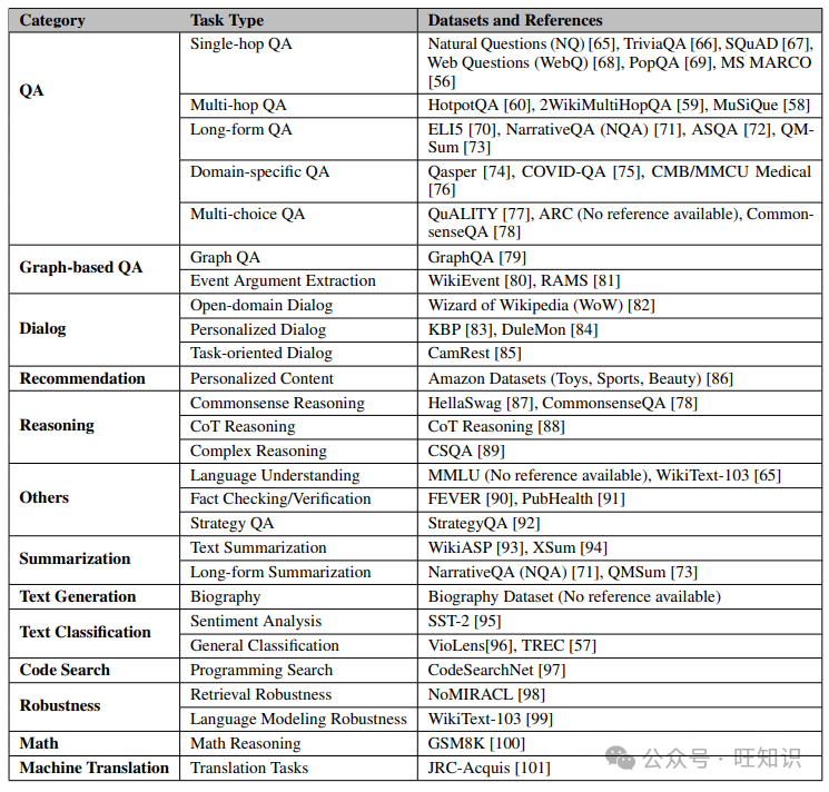 当前的基准测试和数据集为评估检索增强生成(RAG)系统(包括具有智能体和基于图的增强功能的系统)提供了有价值的见解。虽然有些是专门为RAG设计的,但其他的则经过调整,用于在不同场景中测试检索、推理和生成能力。数据集对于测试RAG系统的检索、推理和生成组件至关重要。表3讨论了一些基于RAG评估下游任务的关键数据集。