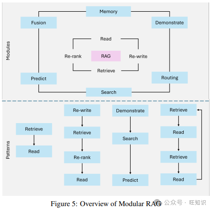 模块化RAG是RAG范式的最新发展,强调灵活性和定制性。这些系统将检索和生成流程分解为独立、可重用的组件,实现特定领域的优化和任务适应性。图5展示了模块化架构,突出了混合检索策略、可组合的流程和外部工具集成。