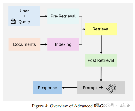 高级RAG系统在朴素RAG的基础上进行改进,融入了语义理解和增强的检索技术。图4突出了高级RAG在检索方面的语义增强以及迭代、上下文感知的流程。这些系统利用密集检索模型,如密集段落检索(DPR)和神经排序算法,来提高检索精度。