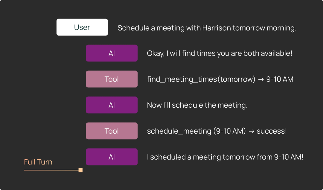 - 完整轮次 (Full turn): 让 agent 完整处理一次输入,可能包含多次工具调用