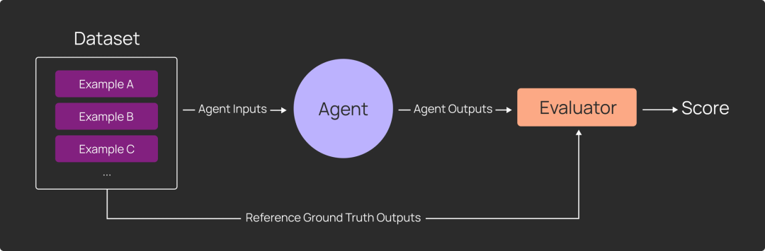 - 用应用处理数据集生成输出,然后用评估器打分