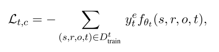 当前任务损失Lt,c:基于当前任务训练集的三元组,以实体预测为多分类任务计算损失: