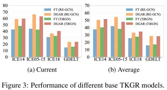 验证 DGAR 在时序知识图谱推理(TKGR)持续学习场景下,推理准确性与遗忘缓解能力的双重优势,同时验证核心组件有效性与模型扩展性。基线模型: