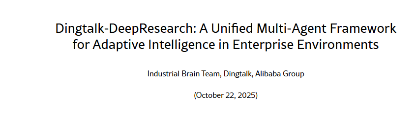本文提出了Dingtalk-DeepResearch——一个统一的多智能体智能框架,专门面向真实企业环境,能够实现深度研究、异构表格推理和多模态报告生成。