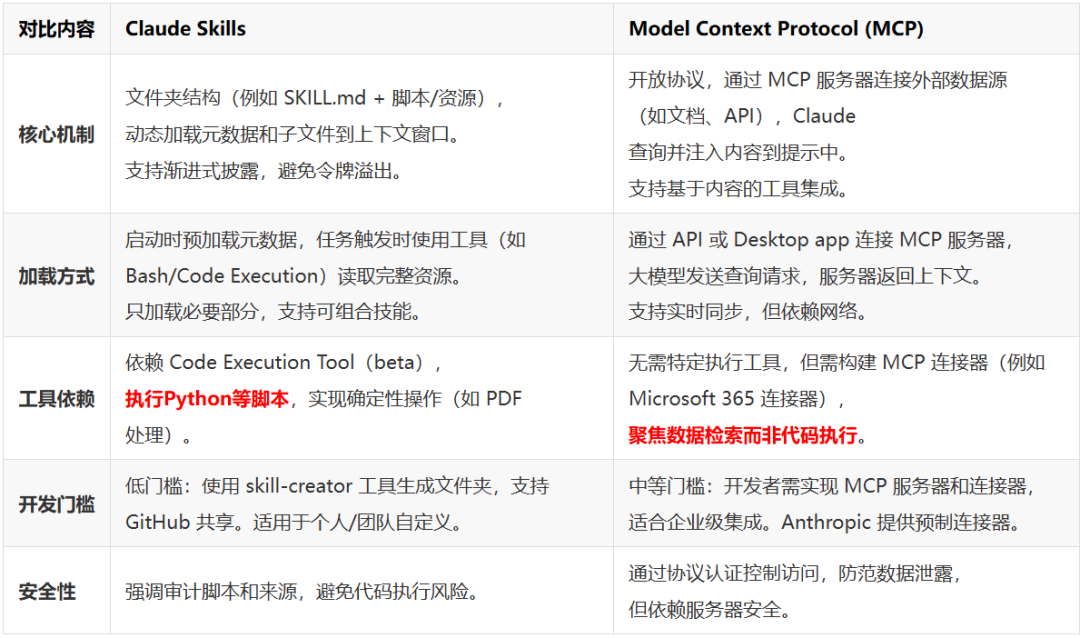 二、Claude Skills 与 Model Context Protocol (MCP) 的对比