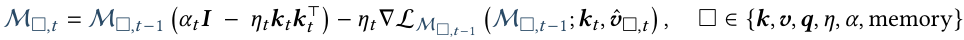 进一步,在嵌套优化框架下,各投影由可学习的记忆模块动态生成: