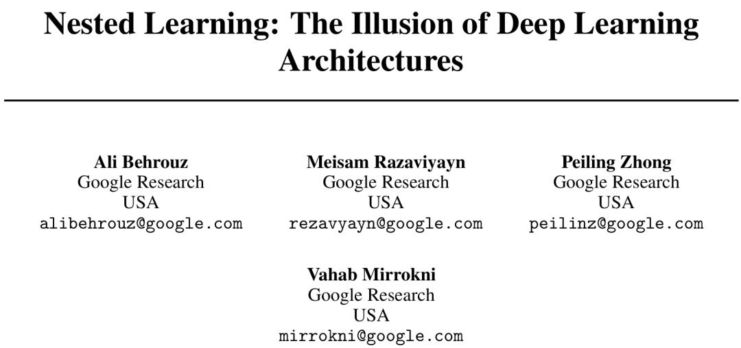 Nested Learning: The Illusion of Deep Learning Architecture