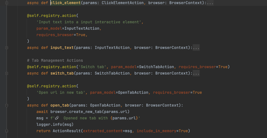 只不过巧合的是,在 browser-use 中所有 Action 都是用 Tools 完成。