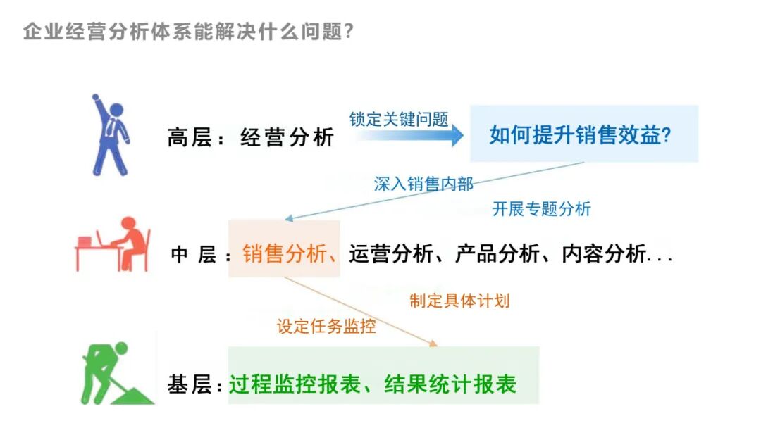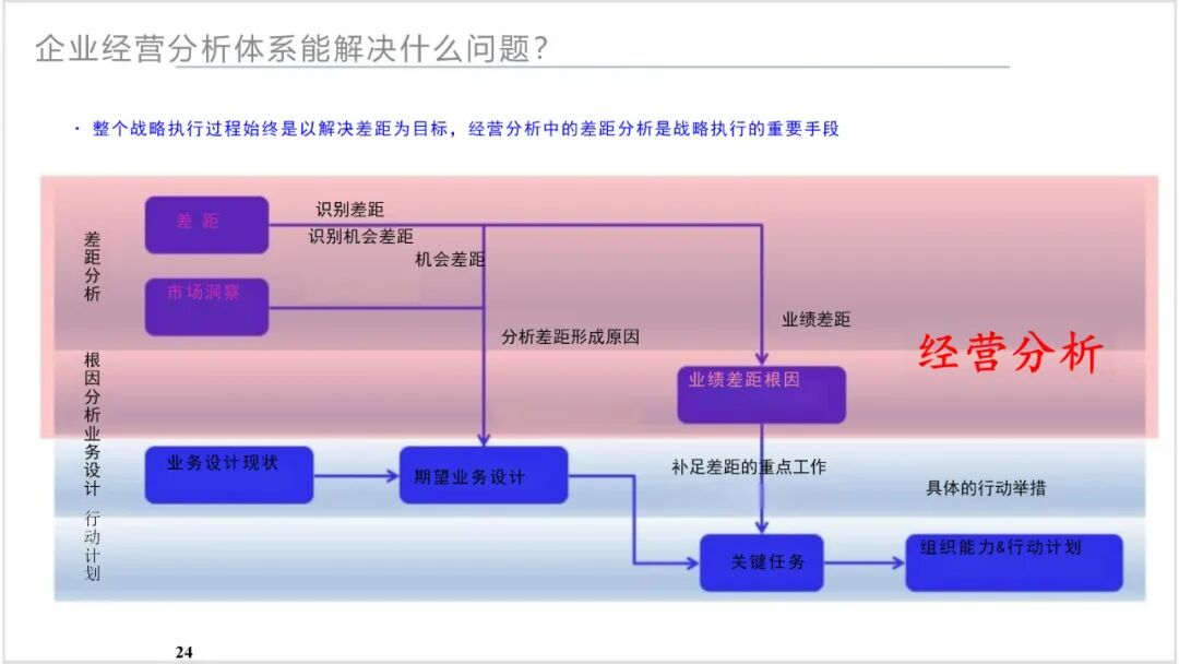 真正的经营分析,本质是一套 “连接战略与执行、贯通业务与财务、联动数据与行动” 的闭环体系。它不止回答 “经营结果是什么”,更要穿透 “为什么会这样” 的核心逻辑,最终落地 “接下来该怎么做” 的可执行方案。