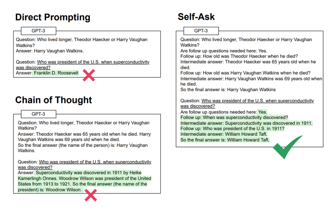 顺着Chain-of-Thought的思路,就有了Self-Ask是对CoT的进一步扩展。