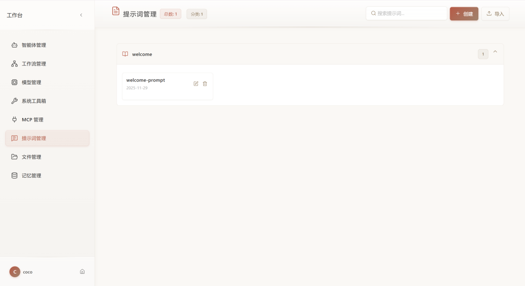 | Prompt Center | 中心化管理可复用的 Prompt 模板,支持分类组织、导入导出和跨项目引用 |