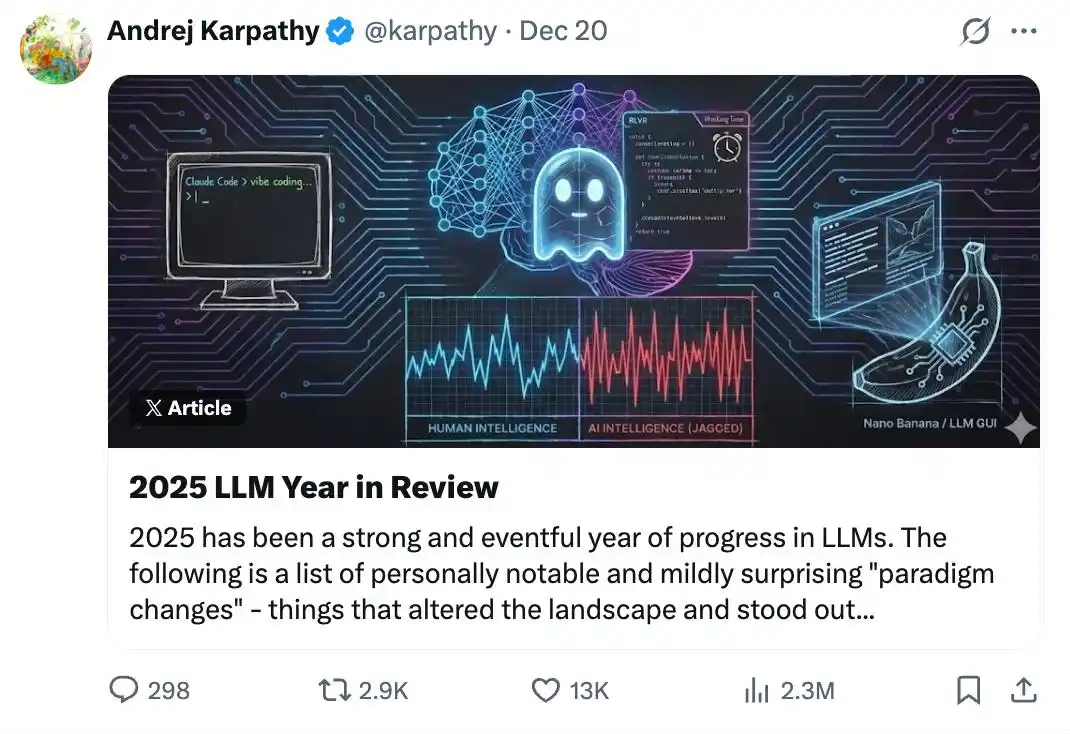 正因为横跨研究、工程与真实产品交付多个层面,他在2025年刚刚发布的这份《2025年 LLM 年度总结》,更像是一份来自一线的复盘:哪些能力真的在进化,哪些只是表面进步,又有哪些风险正在被低估。