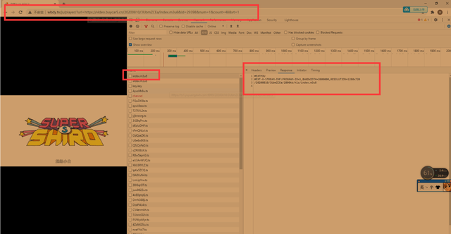 查看发送的请求,看到有两个index,这个网站很有意思,从第一个连接给你一个m3u8,然后再从第一个m3u8里面给你第二个m3u8,这个后面说