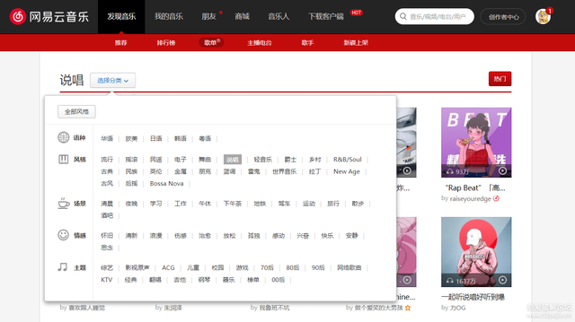 点击它你就可以选择多种类型的音乐歌单,就像在网易云官网一样