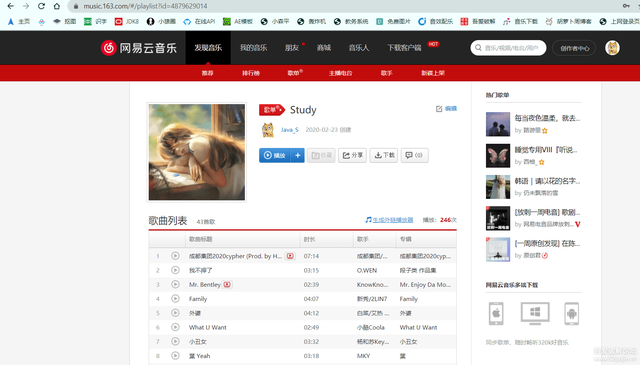 接着点击输入框旁边的第一个按钮(第一个是歌单按钮,第二个是专辑按钮),歌单里面的音乐就展示到了你的眼前