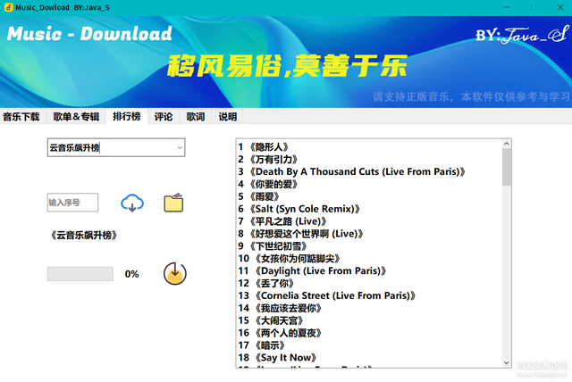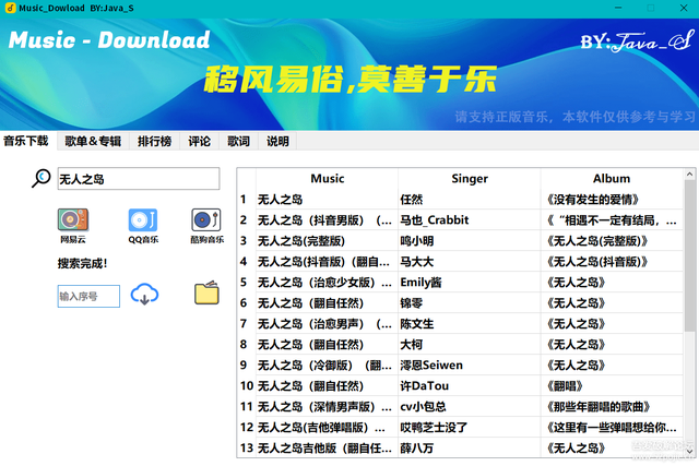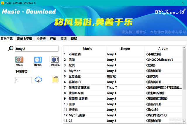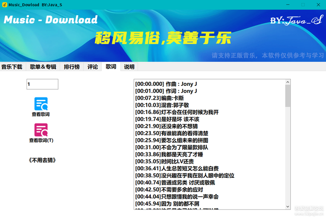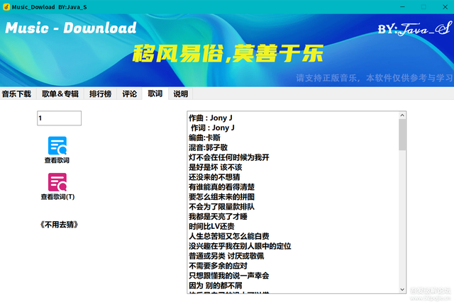 - 本软件仅供大家参考与学习,请支持正版音乐!