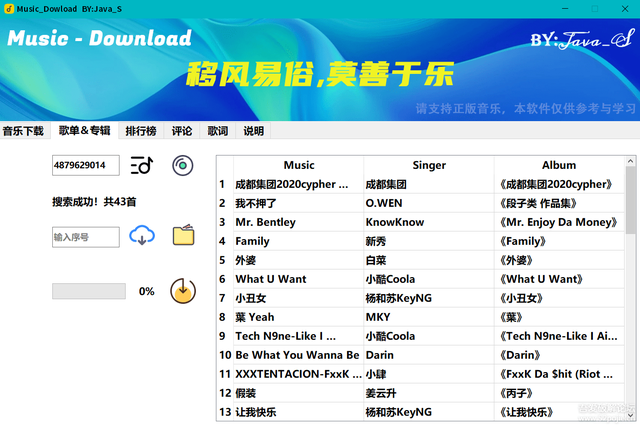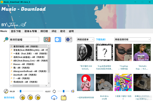 [Music_Download]是我疫情期间写用Python独自完成的第一款软件......结尾的话还没写完...