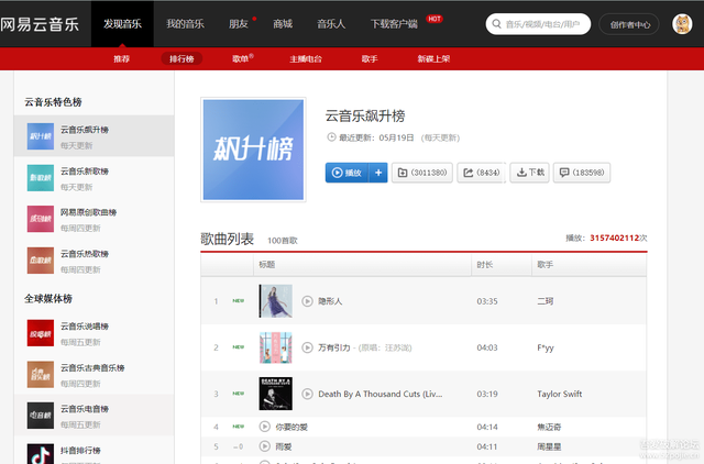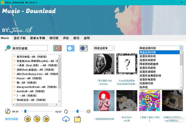 7:查看网易云的26种排行榜,进行下载和批量下载的操作