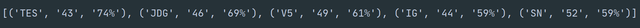 #print(infos_wings) : (('TES', '40', '75%'), ('JDG', '43', '72%'), ('V5', '49', '61%'), ('IG', '44', '59%'), ('SN', '52', '59%'))