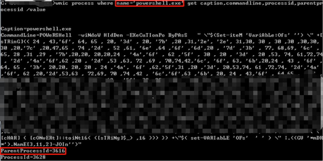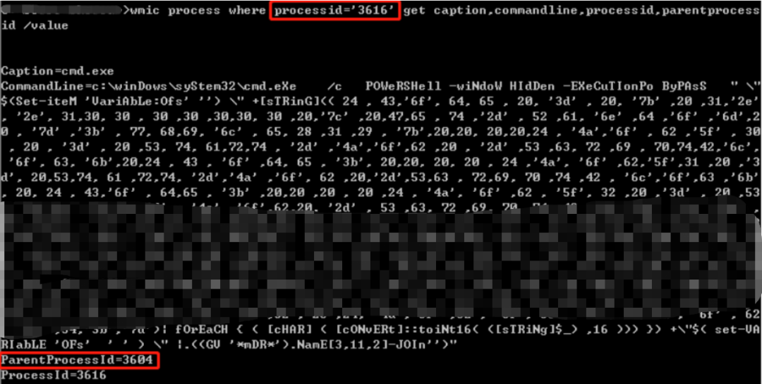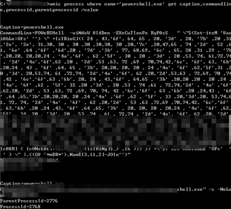 PowerShell中执行了一段被混淆的代码,这不是正常程序的典型行为。市面上有多种工具可以用来分析这类情况。可以使用火绒剑、ProcExp(Process Explorer)、或者ProcessHacker这些工具来查看命令行参数,进而帮助识别和解析这些可疑的操作。