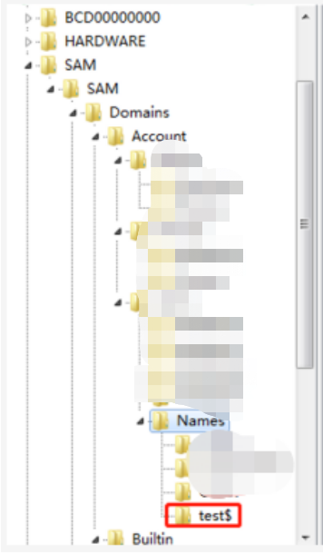接着我检查了注册表,看是否有新建的账户。果然,发现了一个隐藏的影子账户。