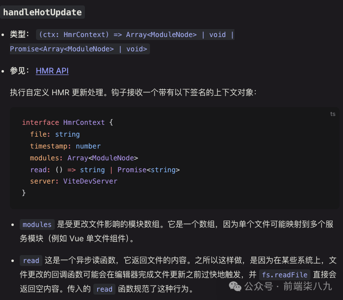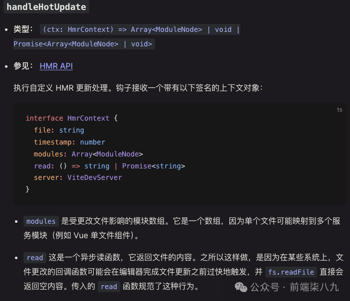 在上一节介绍HMR API时,就介绍过handleHotUpdate,为了节省时间,我们再次将其搬过来。