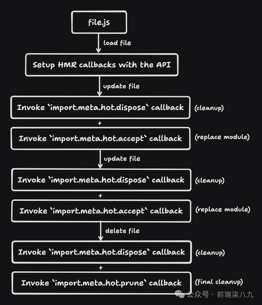 一个模块通常可以访问 HMR API,以处理旧模块删除和新模块新增的情况。在 Vite 中,我们可以使用以下 API: