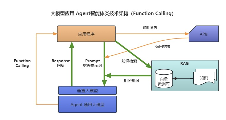 Agent会在大模型的推理结果基础之上,使用一些工具(如调用API)完成某个特定的任务,这个技术也被称为Function Calling(函数调用)。
