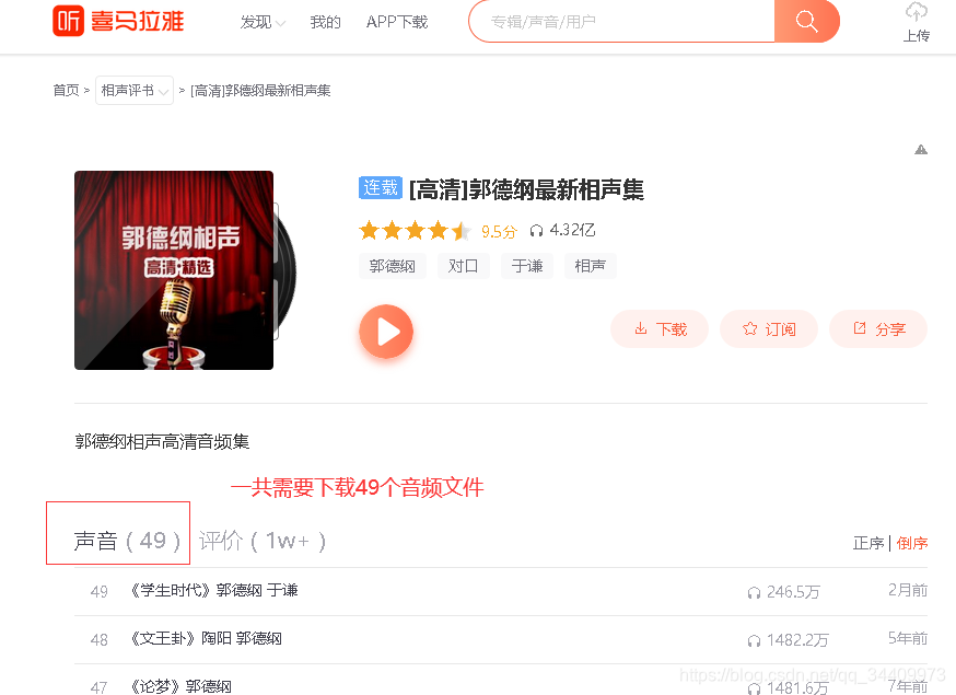 找数据就搞定了,49个音频文件列表数据和对应的音频文件地址数据。