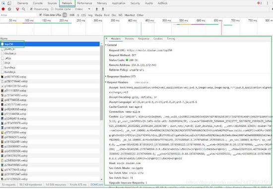 网络(Network)面板记录页面上每个网络操作的相关信息,包括详细的耗时数据、HTTP 请求与响应标头和 Cookie,等等。这就是我们通常说的抓包。