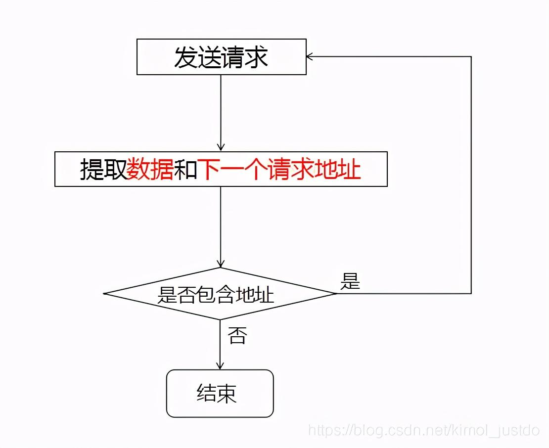 参数为请求的json数据,返回解析后的数据,以及下一个地址,数据格式如下: