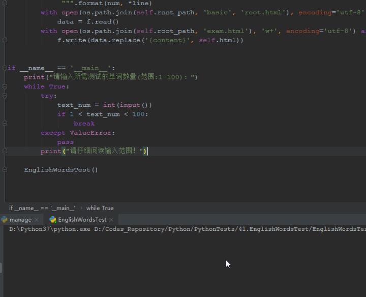 基础html可以作为一大段的string在python中进行定义,最终替换关键内容后输出。至于cet4的单词表,建议就不要添加在代码中了,和打出来的exe文件放置在一起即可。