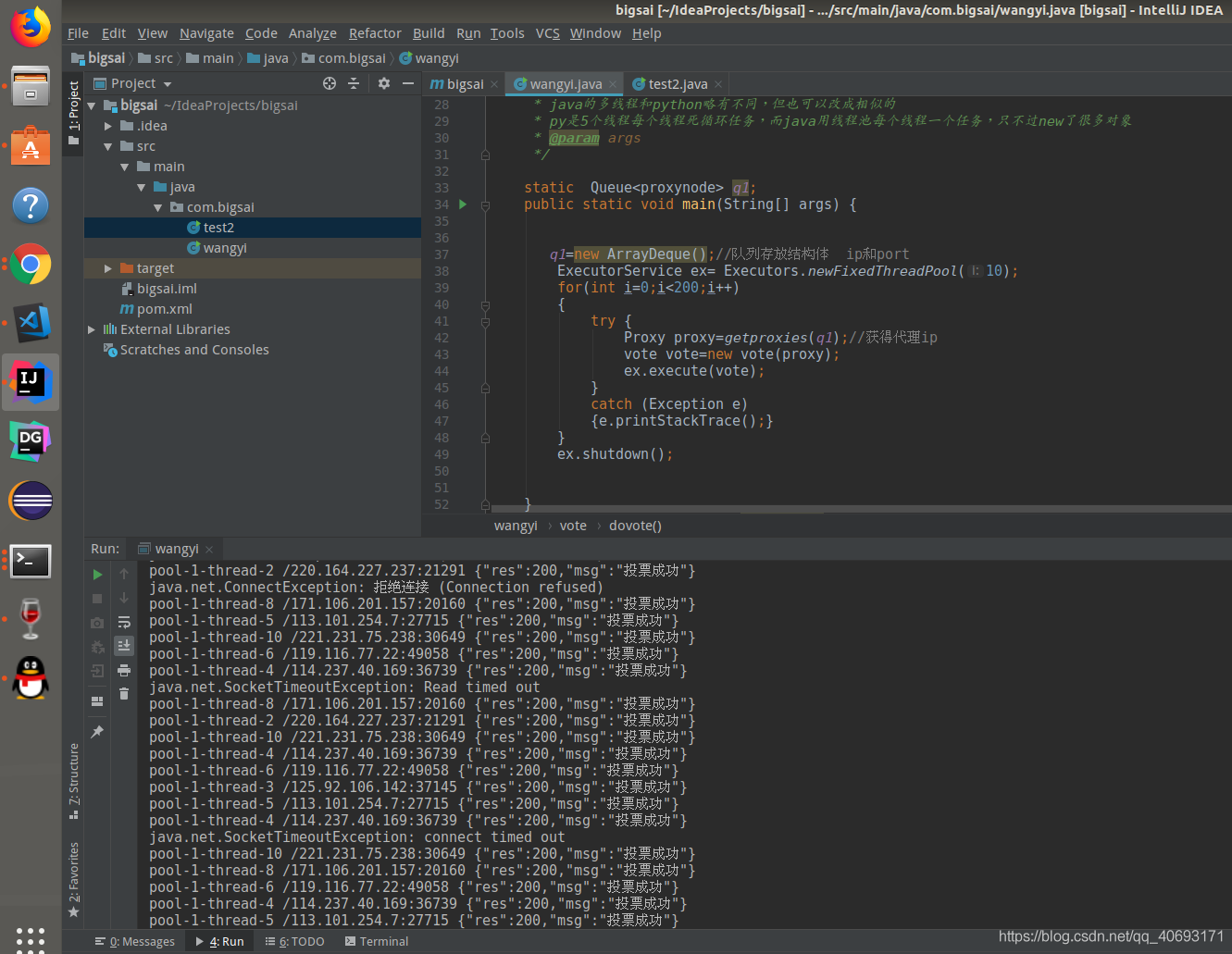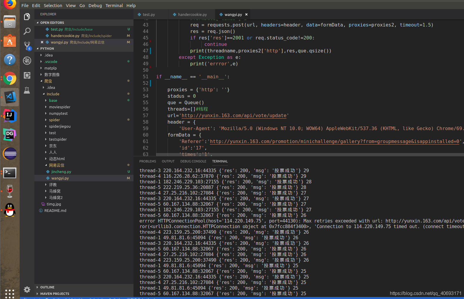 正常的ip代理是一群ip随机抽取其中作为代理ip,进行爬取任务,然后ip失效从ip池中删除。而url的链接一般放到线程安全的全局容器中一个个抛出。ip放到list或者redis中进行维护,做好try catch异常即可。但是这个刷票只有一个url。并且一个ip只能用有限次数。所以换个思路,url不需要容器维护。而ip用队列维护最好,并且python的队列是线程安全的。所以整个程序的架构也就很清晰了。只需要用个queue解析ip获取的格式进行相应储存。然后被消费,当少于一定个数时,请求api获取ip进行填充。 - 在预处理方面,以前介绍过另一个蘑菇代理使用和ip池类似的问题,可以预先参考。