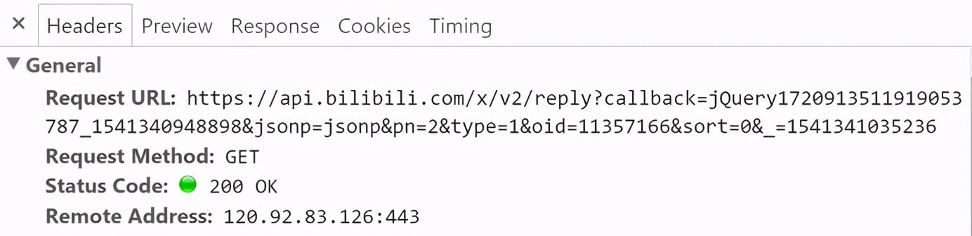 - 我们不难发现,整个过程中 URL 不变,说明评论区翻页不是通过 URL 控制。而在每翻一页的时候,网页会向服务器发出这样的请求(请看 Request URL)。