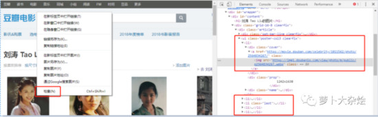 可以清晰的看到,每张图片都是保存在 li 标签中的,图片的地址保存在 li 标签中的 img 中。