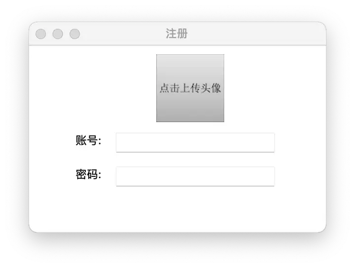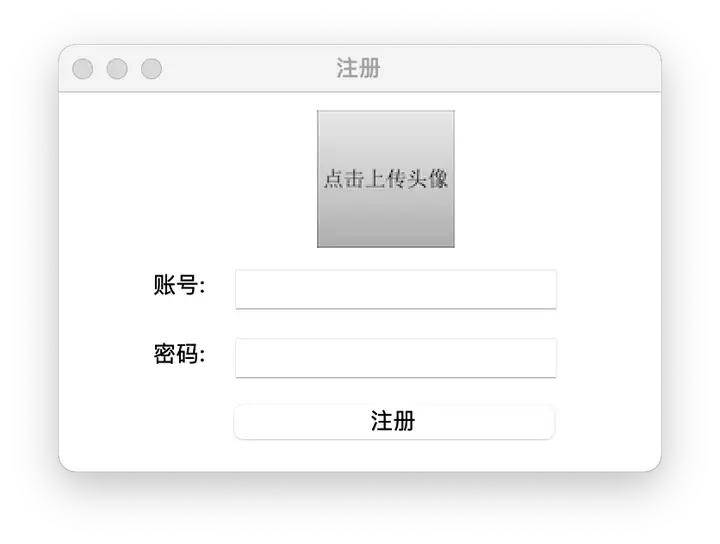 这次教大家实现一个简单的注册界面,跟登陆相比,注册界面新增了一个上传头像的功能,以及将注册信息保存到本地txt文件中的功能,最终实现的效果是这样的:
