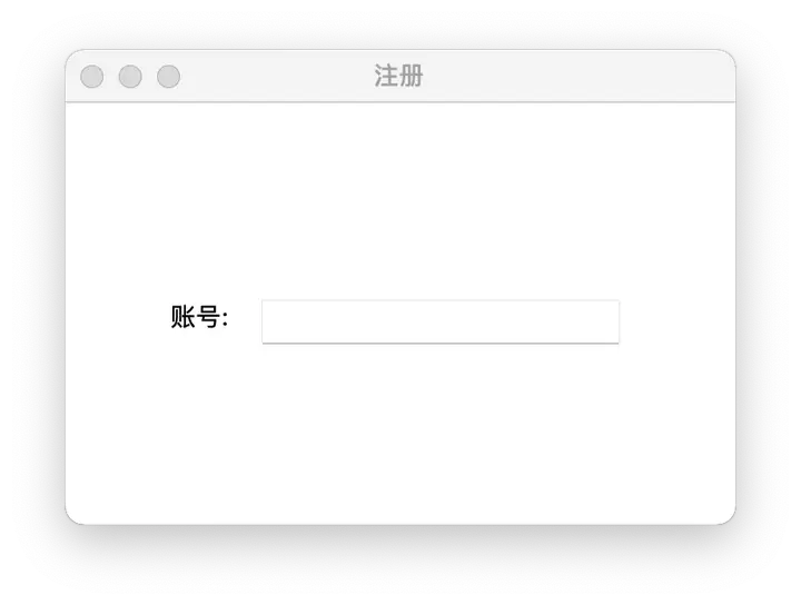 窗口创建好之后,接下来在窗口上将“账号”这两个字显示在窗口上,然后在“账号”后边创建一个用于输入账号的文本框