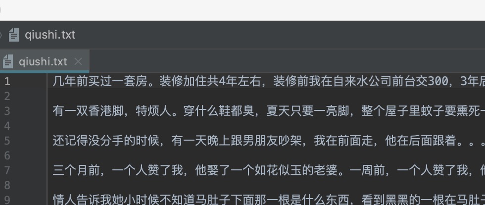最终会在本地添加一个 qiushi.txt 的文件,结果如下: