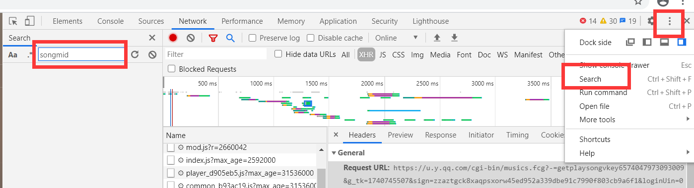 我们再去找songmid是什么,疯狂在文件中寻找,结果没有songmid字样,有也是在js中,songmid在js中还多以注释出现。。。