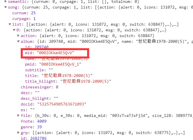 数据包list字段下面就是歌曲信息