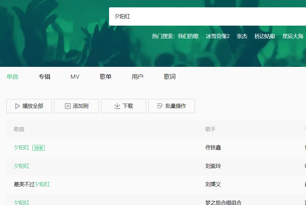以搜索“夕阳红为例”